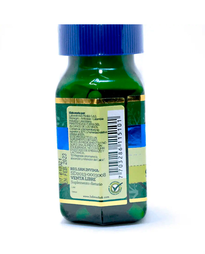 ☘️ Cada cápsula contiene: Citrato de magnesio (490 mg) equivalente a 79,4 mg de magnasio.